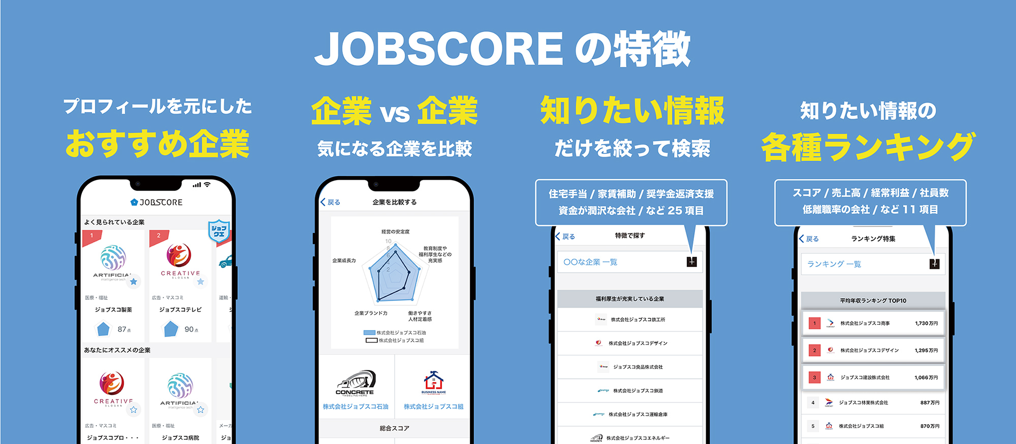 ジョブスコアでは、こうした決算データにもとづく経営の安定性を、独自のスコアとして分かりやすく可視化しています。数字の裏側にある企業のストーリーを読み解きながら、地元でも、地方でも、本当に安心して働ける会社との出会いを、ぜひ自分のものにしていきましょう。