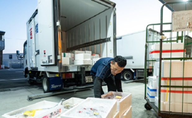 配送ルートの店舗の商品をトラックへ積み込みます。
